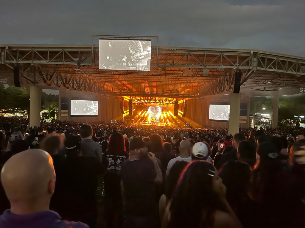 Spiritbox was up first. That’s the band I was really there to see. They put on a great 30min set that felt too short. But the half hour they did play was fantastic. Very tight, sounded great. I loved every song. Up next was Gojira. It took about 45min or so between Spiritbox and Gojira and I didn’t really know why at first. Obviously, they have to set the stage for the next band, but they were moving fast and it seemed like it was taking forever. But once the curtain was up and they hit the stage it was apparants. Lots of pyrotechnics, huge screens and a great light show accompanied a very heavy, hour long set of music. I mentioned before I didn’t really know much about Gojira before this but I did recognize a few songs, one of which was the one they played for the Olympics.