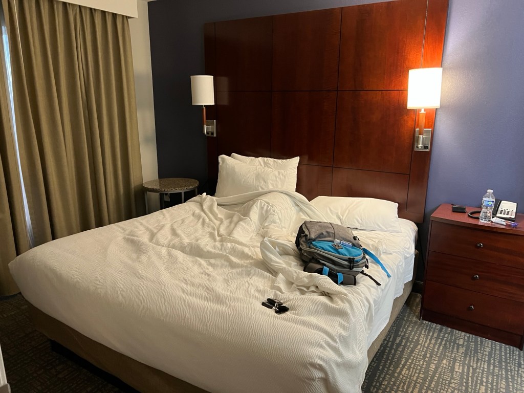 Thankfully the hotel I stayed at offered mobile check-in and mobile key so was able to show up around 11:30ish and head straight to my room. I had a king suite and was excited to get to bed. First impression was a bit of a letdown as it smelled faintly of cigarettes. But it was late, and I was ready to lie down so I just dealt with it. I cranked the AC down to 60 because I could, got ready for bed, and watched a YouTube video to wind down.