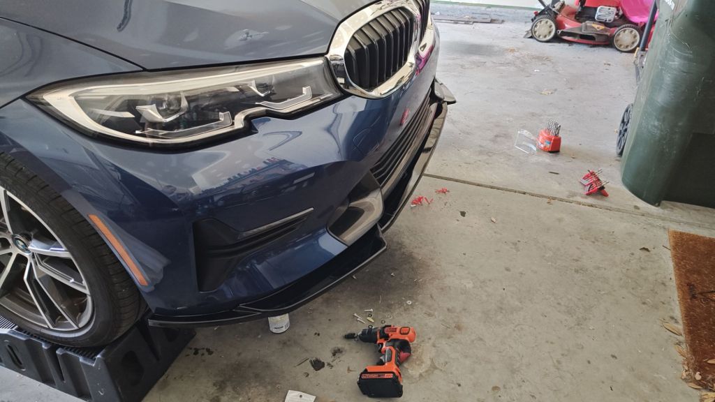It arrived plainly enough from an online retailer. I had a hard time finding a lip for this car actually. 99% of the lips out there it seems are for the M-Sport bumper. Since mine is a Sport Line and not an M Sport it does not get the more aggressive M-Sport bumper. After searching for a while and not finding anything, I changed my search terms to include “non-m” and this one came up! I immediately liked it. I realized later that the reason I really liked it is because it is a clone of a lip from Maxton Designs who make a full kit for the non-M cars. Somehow that never came up in my searches until after I had already installed the lip. Because this is a replica of a lip that is still sold I will not be including a link to it. If this one ever gets damaged though, I will order the Maxton one so it’s legit. I already plan to order the rest of their kit anyway as it looks fantastic.