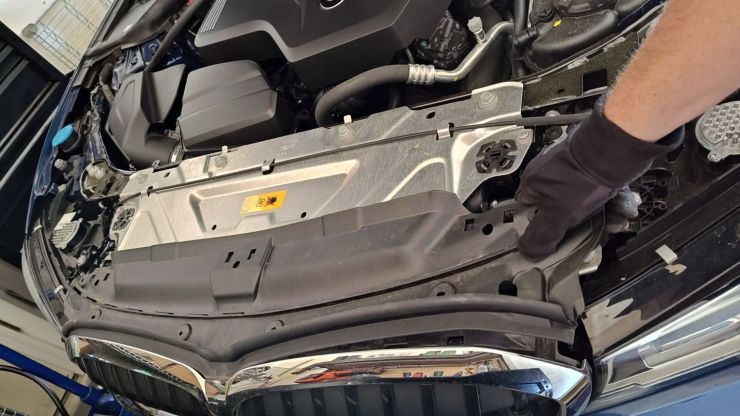 The first part of the OEM grille removal was to pop the hood and remove the the front weather stripping.