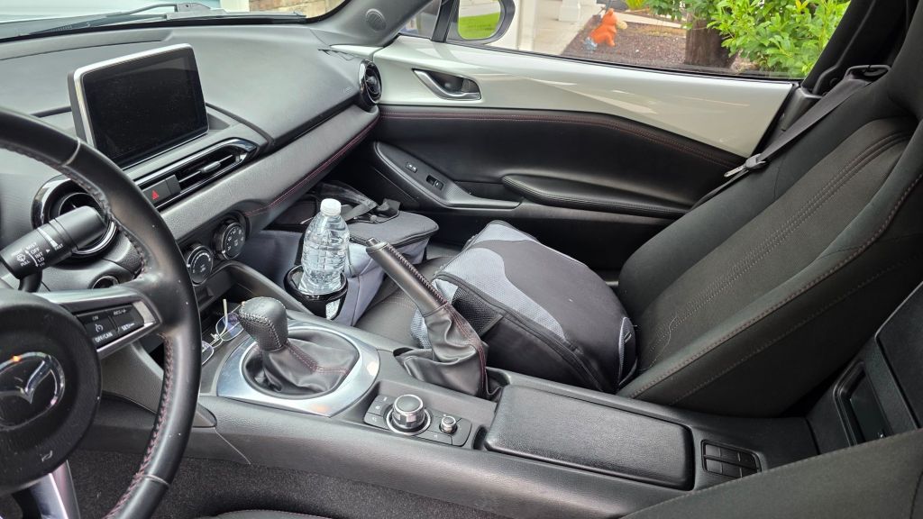I was very proud of my packing overall. It was stuffed, but it was also nice and neat. As it always goes though, about 20 minutes down the road I realized I forgot something. Ok, some things. I left my two-way radio, my rain jacket and my copy of Keith Tanner’s new Miata book that I wanted him to sign.