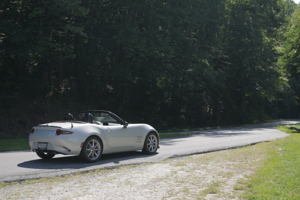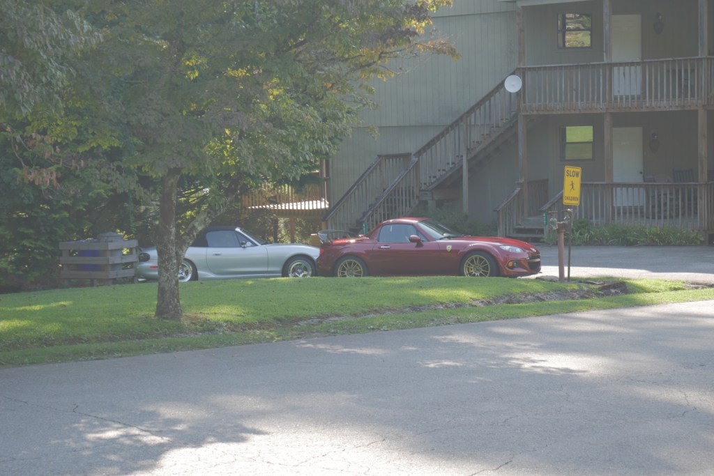 I unpacked my things. Then I immediately went back out to a scenic overlook turn-off spot that I saw on the way in. Unloaded, this car is amazing. Now look, this is a Miata. Curvy roads are kind of it’s thing. It was made for this. But this was the first time I’ve ever driven this car on roads like this. There wasn’t a single stretch of road longer than 20 yards that was straight. It was all curves, some banked and lots of elevation changes.