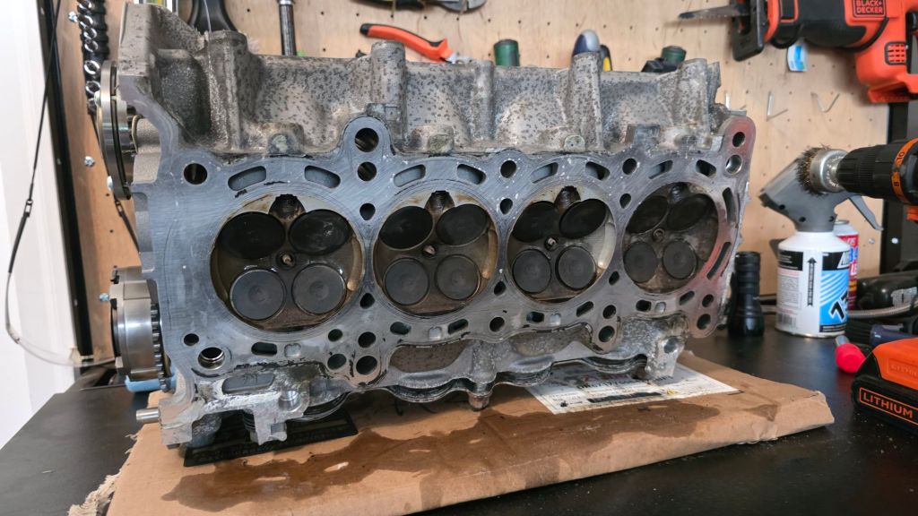 As one last test, I turned off all lights in my garage so it was pitch black. I shined a light in each intake and exhaust port. I could not see any light bleed from the valves. Of course, the head still needs to be professionally inspected but so far, all signs are pointing to this being a great head for my project.