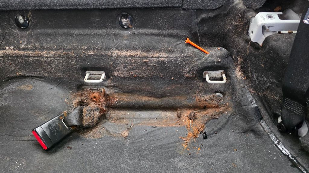 The rear seat bottom was covered in mold. And they were not old, dry stains. It was still wet, living mold.