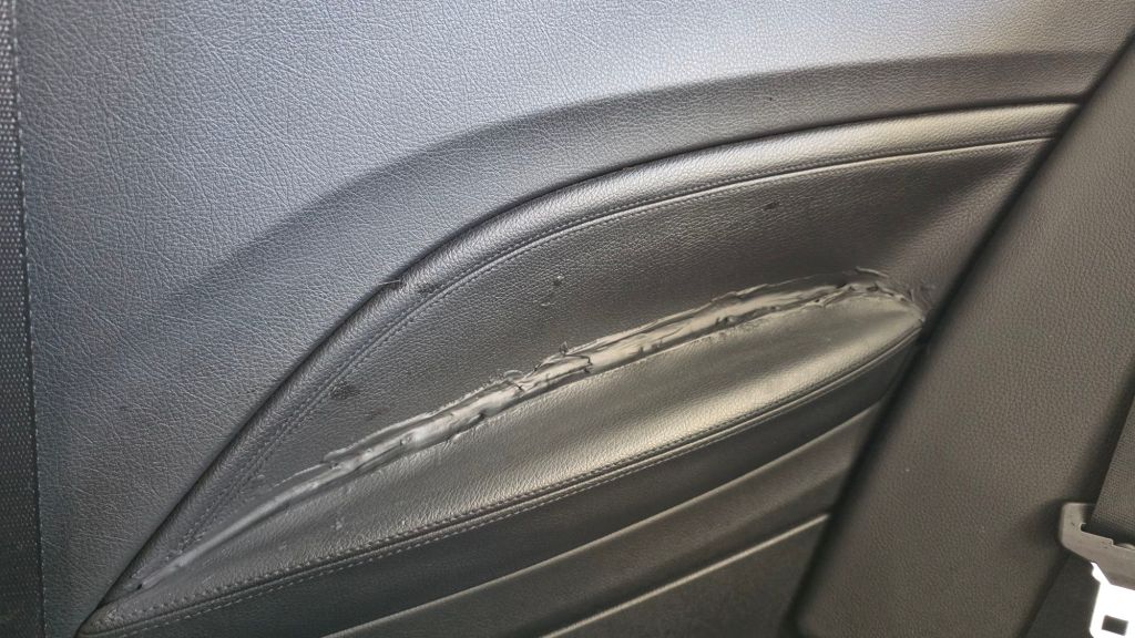 Inside the car was more of the same in terms of cheaping out. The first thing I noticed was the musty water smell. Next was the door panels. The leather on them had all been repaired very poorly. It looks like they just ran a bead of silicone around them to “fix” it.