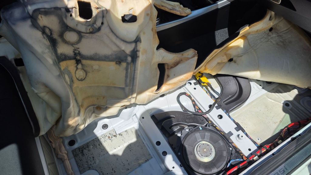 That picture shows it after using a wet-vac to extract water from the floorboard. The subwoofer had a little bit of water in it so I removed it, dried it out and used electrical connection cleaner on it as the plug showed a small amount of corrosion. Just for good measure I sprayed some on the other electrical connectors down there too even if they were still dry.