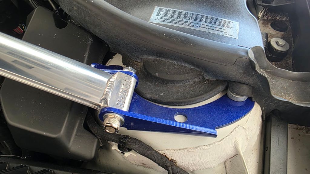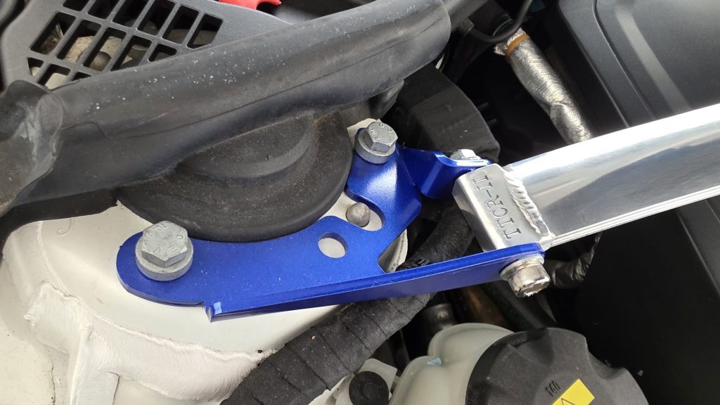 I know there are varying thoughts on upper strut bars, especially on modern cars that usually come with some form of strut bracing from the factory. A lot of people say it’s a waste. Some say it’s still worth it, but the bar needs to be solid, and not bolted together like the one in the photo as it’s not rigid and allows for flex at the joints.