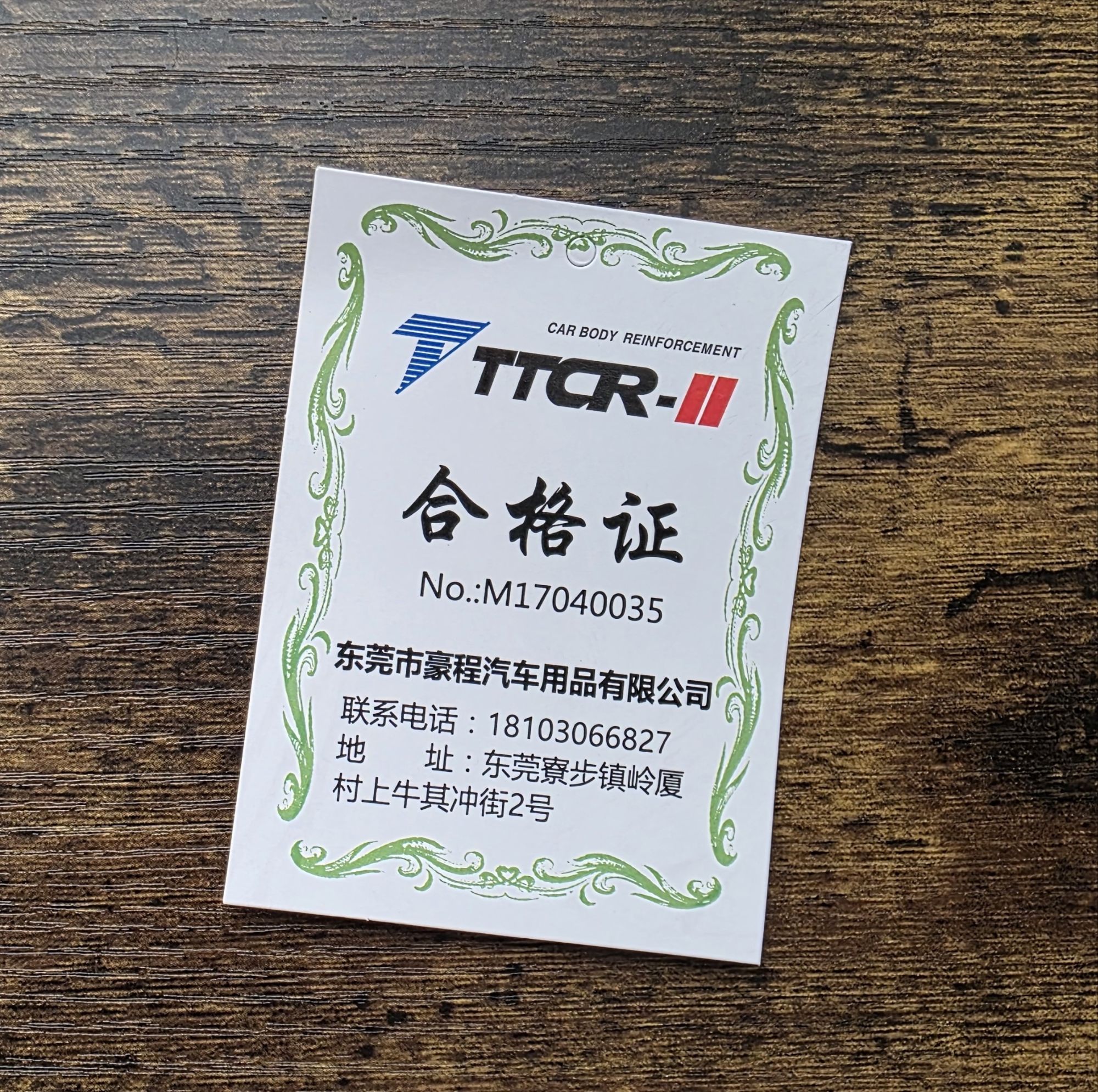 It even came with a certificate to prove it’s a real TTCR-II product!